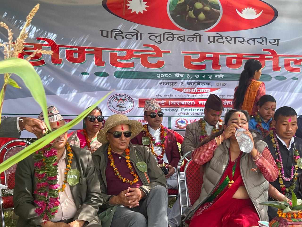 होमस्टे महासंघ नेपाल लुम्बिनी प्रदेश अध्यक्ष तिलकराज थारुको अध्यक्षतामा भएको सम्मेलन लुम्बिनी प्रदेश, वन, वातावरण, पर्यटन तथा खानेपानी मन्त्रालयका सचिव मोहनराज काफ्लेको प्रमुख आतिथ्यतामा भएको थियो ।