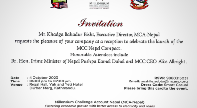 चर्को विवादबिच नेपालमा एमसीसी लागू, एमसीए नेपालद्धारा आज होटल याक एन्ड यतिमा रात्रीभोज २०८० आश्विन १७