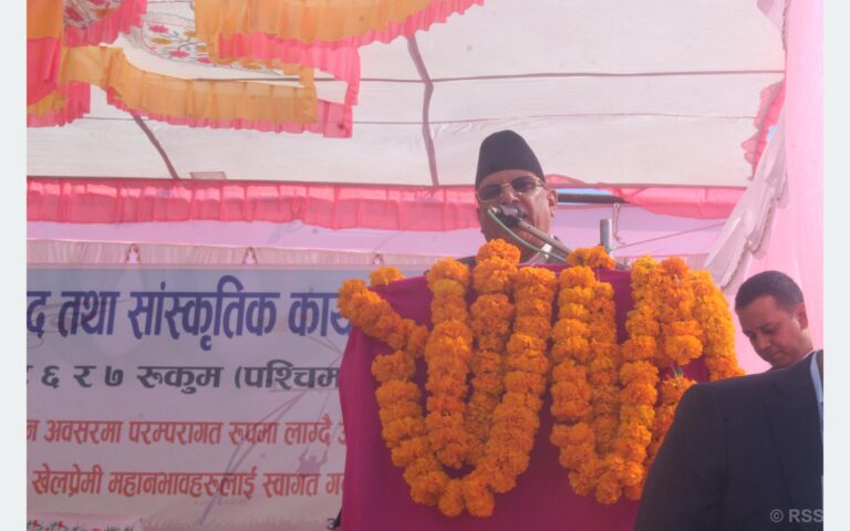 (रुकुम पश्चिम), ९ कात्तिक : प्रधानमन्त्री पुष्पकमल दाहाल ‘प्रचण्ड’ले वर्तमान गठबन्धन सरकार पाँच वर्ष नै टिक्ने बताउनुभएको छ । रुकुम पश्चिमको बाफीकोट गाउँपालिका-६ मग्मामा सहिद स्मृति खेलकुद तथा सांस्कृतिक मेलामा सम्बोधन गर्नुहुँदै प्रधानमन्त्री दाहालले वर्तमान सरकार बनेदेखि नै ढाल्ने चलखेल सुरु भए पनि कसैले हल्लाउन [...]