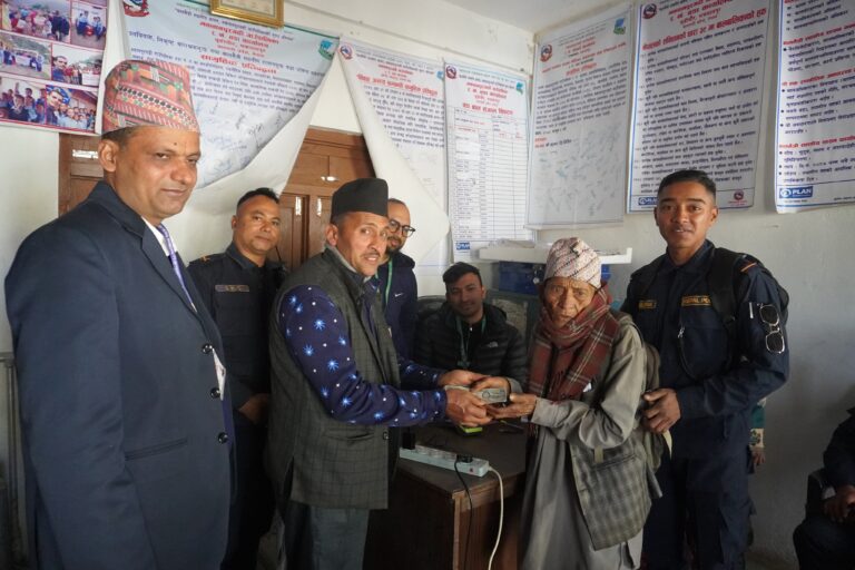 वडा स्तरीय सामाजिक सुरक्षा भत्ता वितरण गर्दै मकवानपुरगढी गाउँपालिका